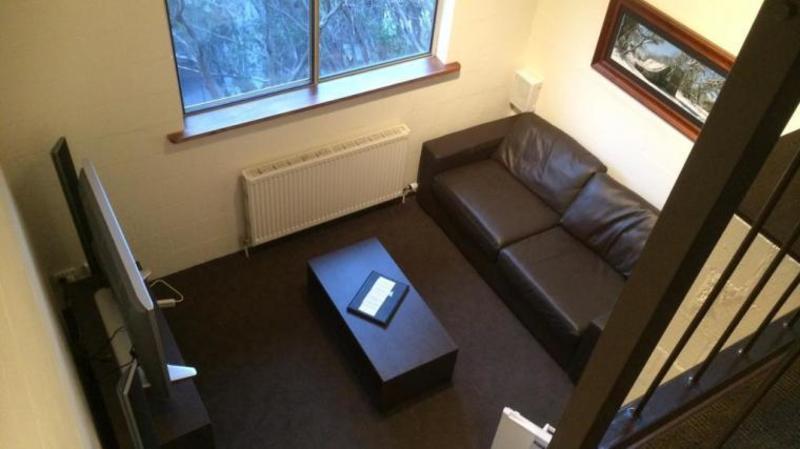 Very large two-story Mezzanine Suite (largest in the building). With a splittable King sized bed upstairs as well as a sofa bed and a sofa bed in the lounge room, this suite sleeps four adults, or two adults and four kids, and has a bar fridge and coffee/tea making facilities.